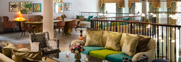 Dating back to 1884, this former London & Country Bank—later the Danish Club—has been reborn as a six‑floor private members’ club that blends heritage architecture with modern luxury. Russell Sage Studio crafts the interiors. They conjure Art Deco-inspired flair through velvet furnishings, mosaic floors, and a leafy mezzanine with cascading ivy.